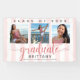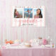 Announce to the world that your favourite grad has reached their milestone with this stunning, simple, modern, girly personalised 3 photo banner. Sparkly rose gold glitter script typography overlays a light pink and white striped background. Add 3 photos of your choice and personalise the custom text with your graduate’s name, school name and class year. Choose from indoor or outdoor options. Matching invites, thank you cards, cap toppers, fans, napkins, plates and other graduation goodies are also available in this trendy and stylish collection. Guaranteed to preserve cherished memories of their special occasion!