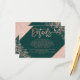 Rose Gold typography on customisable emerald green and faux rose gold geometric stripes, glitter and confetti chic wedding directions and details , perfect for elegant, chic wedding,
