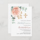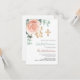 Rose gold and blush pink florals, eucalyptus greenery and a golden cross. Personalise and add a name and details.