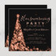 Elegant Holiday Housewarming Party invitation design with Festive Rose Gold Christmas Tree Lights motif, custom name and date and additional text