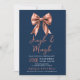 Rose Gold Jingle Mingle Xmas Party Bow Navy Blue Invitation