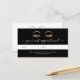 Elegant appointment reminder cards for salons, aestheticians, makeup artists, lash or brow specialists feature a lush pair of eyelashes and eyebrows in faux rose gold foil on a black background. Includes space to write in your customer's next appointment date and time, with your custom cancelation policy beneath. Add your name or business name and contact details to the reverse side.