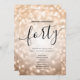 Elegant Glam Rose Gold Glitter Lights 40th Birthday Script template featuring party program and menu text, glitter lights and modern typography script.