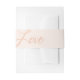 Elegant word "love" is large and slightly cut off for a whimsical stylish bellyband design. Compliments our Blush and Bronze wedding invitation set.