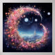 "Rose Gold Lunar Dream" is a breathtaking fantasy landscape. An ornate, rose-gold crescent moon, adorned with a profusion of delicate pink flowers, frames a magical nighttime scene. Multiple moons glow in the star-filled sky above a distant, fairytale castle nestled in a mountainous landscape. This dreamy poster is perfect for adding a touch of romance and whimsy.