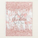 A rose gold and white coloured faux marble stone background. Rose gold, pink faux glitter drips, paint dripping look as decoration. Personalise and add a name and monogram initials. The name is written with a modern hand lettered style script.