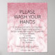 Girly Rose Gold - Blush Pink Marble Ombre Sparkle and Glitter Grand Reopening Glam Luxury Hair Salon, Beauty Store, Eyelashes, Nails, Makeup, Microblading, Hair Stylist, Lashes, Hair Stylist or Make Up Artist Salon Wash Your Hands Guidelines with custom add your business name and return address. This simple modern and elegant personalised design is perfect for reopening your business after covid-19 (coronavirus) with proper health and safety requirements in place for your Customer, Client and Employees.