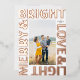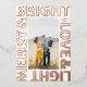 Shiny raised rose gold foil text lights up this modern text based frame holiday card with the wording "Merry & Bright Love & Light." The family name text and a landscape photo are easy to swap out to make this card one of a kind. The blank backside of this card gives you free range to really make it yours by adding a short message, a long form letter or more photos.
