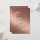 This beautiful modern rose gold metallic look wedding invitation with modern typography and text template fields both sides ensures you can add all required details including reception, rsvp, gift registry, direction and more. For matching items and custom edits contact designer LeahG.