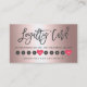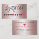 Elegant rose gold metallic foil script makeup hair pink heart loyalty card with modern hand lettering style brush typography on white , a simple, professional and minimalist card. offer 10 treatments and discount to your customers.