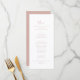 This rose gold minimalist dinner menu card is perfect for a modern wedding. The simple and elegant design features classic and fancy script typography in rose gold.