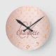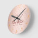 Personalise and add your monogram letters, initials and name. The monogram initials as a pattern on the background. A rose gold, pink faux metallic looking background. Dark rose gold coloured letters. Golden clock numbers. This clock is also available in our store with only the monogram pattern.