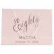 Rose gold, blush background. Eighty is written with a dark rose gold script. Personalise and add a name and date.