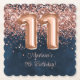 Rose Gold Navy Blue 11th Birthday Party Paper Coaster