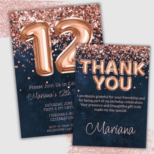 Rose Gold Navy Blue 12th Birthday PartyDesigned by Denise Witmer