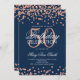 Rose Gold Navy Blue 50th Birthday Glitter Confetti Invitation