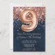 Rose Gold Navy Blue 9th Birthday Party Invitation