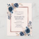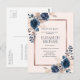 Rose Gold Navy Blue Dusty Pink Floral Delay Date Postcard
