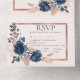 Rose Gold Navy Blue Dusty Pink Floral Wedding All In One Invitation