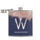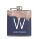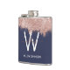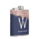 Rose Gold Navy Blue Girly Glitter Dust Monogram Hip Flask