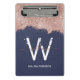 Rose Gold Navy Blue Girly Glitter Dust Monogram Mini Clipboard