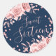 Rose Gold Navy Sweet 16 Birthday Floral Glitter Classic Round Sticker