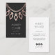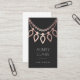 Promote your jewellery design business with these elegant vertical business cards in rich charcoal grey with rose gold accents. Design features an ornate necklace illustration at the top in faux rose gold foil, with two lines of custom text beneath. Add your jeweller business contact details to the reverse side, along with your social media username. To reveal additional social media icon options, open the design tool.