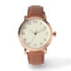 Men's Rose Gold Vintage Watch with a Brown Leather Strap, showcasing bold Arabic numerals in rose gold (#B76E79) on an off-white (#F5F5DC) background. This customisable timepiece can be personalised with your monogram, name, or image, making it a classic and sophisticated choice for work or formal events.