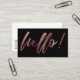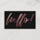 Rose Gold Ombre Hello in Handwriting on Black Business Card