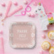 This floral baby girl shower paper plate features a beautiful combination of rose gold pink and white colours, adorned with a traditional Mexican folk art design called papel picado. The design showcases delicate white flowers and leaves, creating a charming floral pattern. Against the rose pink background, the plate also includes the heartfelt phrase 'Thank You,' adding a touch of gratitude to the overall aesthetic.