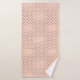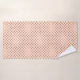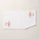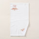 Chic bath towel set done in rose gold and white featuring stripes, on the bath towel and polka dots, on the wash cloth. The hand towel is done in white with a rose gold crown, at the bottom with custom coral coloured text reading Hers. Personalise the text to read what you want. Great gift idea for weddings and new home owners.