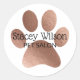 Elegant and modern white and faux rose gold foil paw print logo product stickers. Easily customized for your pet related business.