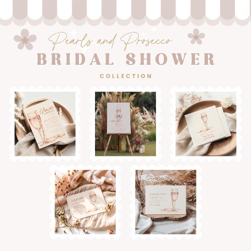 An elegant blend of blush pearls and sparkling rosé with a touch of rose gold glamour. This soft, feminine design sets the tone for a stylish bridal celebration — chic, modern, and full of bubbly charm. Personalise every detail to match your event's vibe, from a classic garden party to an upscale brunch.