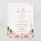 Bright faux rose gold calligraphy hello 40 birthday invitation featuring some beautiful peonies and an elegant champagne glass. This design is sweet way to invite guests to a 40th birthday celebration.