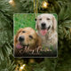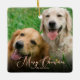This simple and beautiful photo Christmas ornament features elegant rose gold script "Merry Christmas" and your own pet's name(s) and photo as the background. Easy to personalise with your own special photo, names and year. Back of the ornament features the year on the same photo.