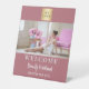 A rose gold background. Personalise and add your company, business logo, a photo, text, room number. White text.