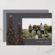 A modern and elegant Christmas holiday card design featuring a horizontal photo on a charcoal grey background adorned with pine trees trimmed with rose gold foil and topped with stars. Personalise with your custom holiday greeting, family name and the year.