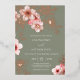 This elegant floral wedding invitation features a real rose gold foil line art flowers and pink cherry blossoms on a sage green background.