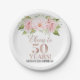 Rose Gold Pink Floral Cheers to 50 Years Birthday Paper Plate