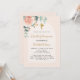 Rose gold, blush arch background decorated with a rose, eucalyptus greenery and a golden cross. Personalise and a name and ceremony details. Black and golden coloured letters.