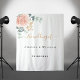 A chic white background. Decorated with a rose gold and blush pink watercolored floral (rose) eucalyptus leaves, sprigs, greenery and a faux gold leaves. Personalise and add the name of the bride tand groom and a date. Black and golden letters. Can be used as a wedding welcome banner, as party wall decoration or as a photo booth backdrop.
