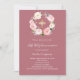 An elegant girly rose gold background, decorated with watercolored pink and white flowers in a wreath and a golden cross. Personalise and add a name and details. White text.