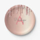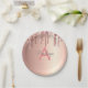 Rose Gold Pink Glitter Drips and Sparkle Monogram Paper Plate