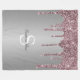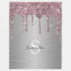 Enjoy this elegant fleece blanket design featuring your name and monogram or initial with chic and sparkly rose gold pink glitter drips over a silver grey background.