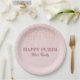 Rose Gold Pink Glitter Dust Hebrew Purim Sameach Paper Plate