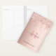 A rose gold background with elegant rose gold, pink drips, paint drip look. Personalise and add a name, monogram letter and a title. The name is written in dark rose gold with a large modern hand lettered style script with swashes. To keep the swashes only delete the sample name, leave the spaces or emoji's in front and after the name.