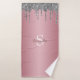 Rose Gold Pink Silver Glitter Drips Monogram Name Bath Towel Set