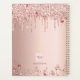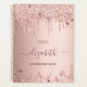 A rose gold background with rose gold and pink drips, paint drip look and stars. Template for a year. Personalise and add a name and a title. The name is written in dark rose gold with a large modern hand lettered style script. Perfect for school, work or organising your personal/family life. To keep the swashes only delete the sample name, leave the spaces or emoji's in front and after the name