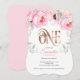 Pink, watercolor Floral, Rose gold, Girl, First Birthday Invitation