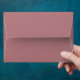 Expectations met; I liked that I had the opportunity to include our address on the back of the envelope. This color matched very well with my save the date. The color was the same as shown above. I had our address labeled on the back of the envelope and the font/printing met my expectations.